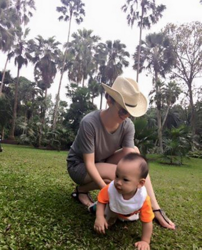 徐若瑄儿子头戴盆超可爱