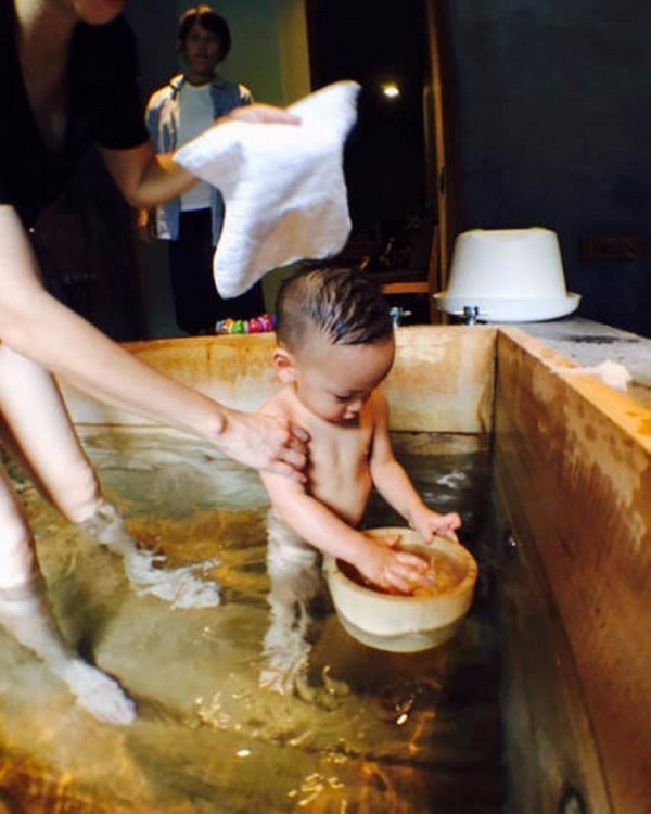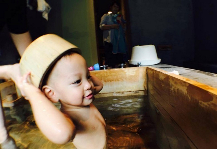 11月15日,徐若瑄在社交媒体上传几张带儿子小V宝返回家乡探外婆泡温泉的照片,只见小V宝躺在妈妈怀中,拎起个水盆盖当帽戴,非常可爱!徐若瑄又帮儿子洗头,动作非常温柔。