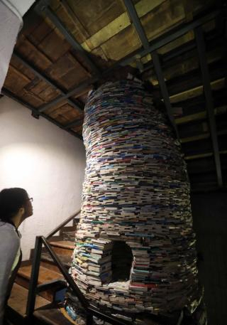 妈妈4吨书搭2层楼高书井 警醒不要将孩子困书中(图)