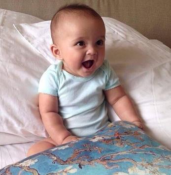 稍微长大点的样子真的超可爱,大大的眼睛,虽然头发不多,但是看起来就已经让人很想抱着亲一口了,感觉和爸爸一个样。而且米娅小时候似乎比较像个小男生哦!