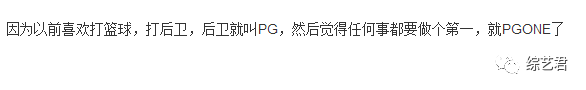 关于PG one这个名字的来历,他自己曾透露,是因为打篮球时喜欢打后卫,后卫即PG,而做事情喜欢争做第一,于是在后面加了个one,而关于万磁王,粉丝表示,一定是“万词王”的意思~