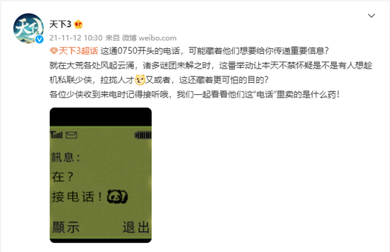 比如NPC打电话,用一通突如其来的NPC电话,渲染“真真假假”的悬念氛围,调动玩家真情实感,引导用户关注剧情,深度参与内容讨论。此举对玩家来说,能拥有更强的代入感和沉浸感,因此反响颇佳,且催生了许多梗文化。