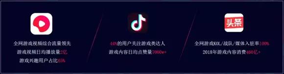 游戏内容消费高速增长,随着用户喜好与需求的变化,内容营销价值逐渐凸显。数据显示,2018年今日头条游戏内容消费超过460亿、抖音游戏内容日均点赞量超过7000万、西瓜视频游戏视频日均播放量达2亿,巨量引擎集结了今日头条、抖音短视频、西瓜视频、火山小视频等产品,能够提供多元的内容创作方式,为游戏内容营销提供优质的生长土壤。