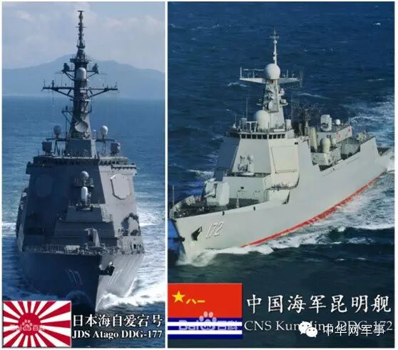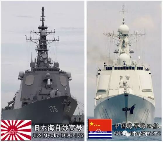 左图为日本金刚级驱逐舰、右图为中国052C驱逐舰