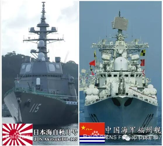 左图为日本秋月级驱逐舰,右图为中国现代级驱逐舰