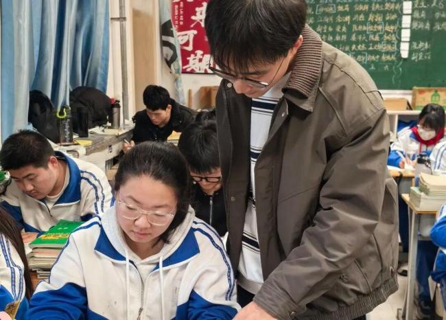 班长魏萌说王雁升“不着调”,随即和周围的同学笑作一团。另一位班长武文杰认为00后老师的教学风格和老一辈不一样,跟学生们相处更加融洽。课堂上是师生,下课铃一响就成了朋友。王雁升会组织学生周末到他家里吃火锅,在流感季为学生熬一大锅的雪梨汤,在高考临近的每一天,用轻松的班级氛围化解高三班的紧张。