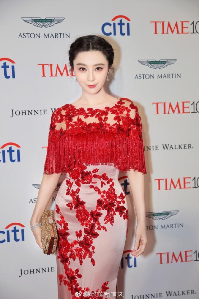 流苏的设计加上逼真的花朵刺绣,将范爷的性感体现的淋漓尽致,收腰的设计很好的秀出了范爷的小细腰。