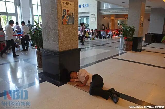 ▲去年6月3日,深圳市房地产权登记中心。凌晨5点,一位排队的市民席地而睡。
