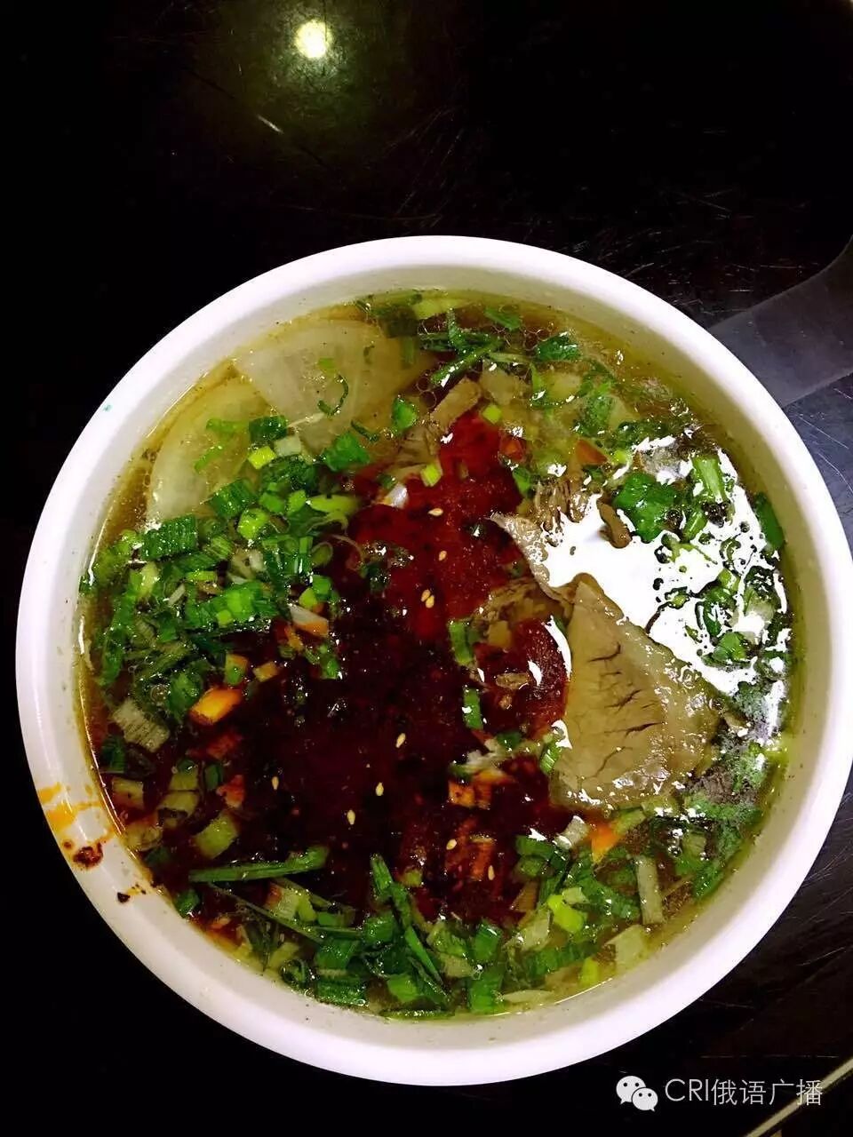 谈到兰州的饮食,所有与我同行的同事们都表示非常喜爱。尤其是蜚声国内外的兰州牛肉面。这种面条被浸在牛肉汤中,表面浮着一层薄薄的香喷喷的油花。可以说,这里的牛肉面已经形成了一种独特的文化。据说,同其它任何一种生意一样,经营面馆也有不成文的规定。比如,两家面馆之间的距离不得小于30米,以免引起不必要的相互竞争。