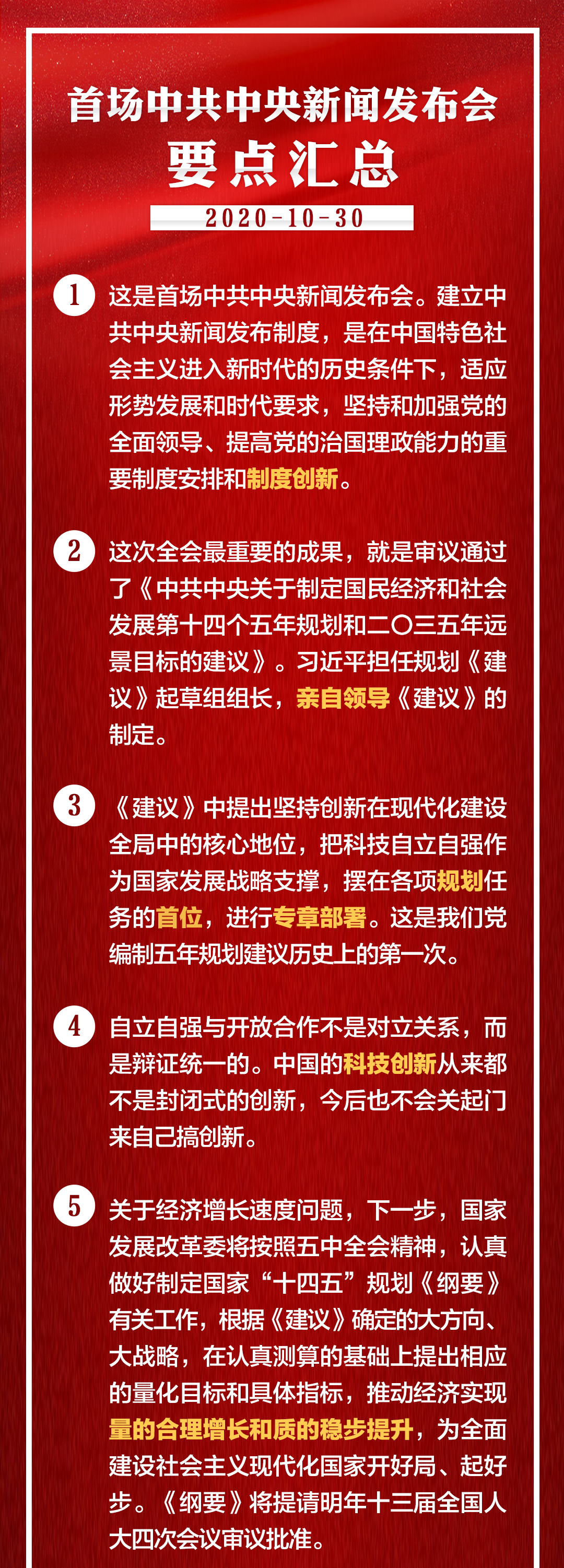 在编制五年规划的历史当中,这一提法是第一次 央视网 2020-10-31 15:23:38 A+ A- 原标题:在编制五年规划的历史当中,这一提法是第一次→10月30日中共中央举行新闻发布会介绍党的十九届五中全会精神发布会上这些要点信息量很大↓↓↓ 责任编辑:孙启浩 CN037