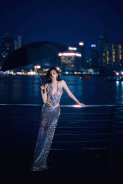 张天爱穿深V长裙格外吸睛 撑伞回眸尽显成熟诱惑