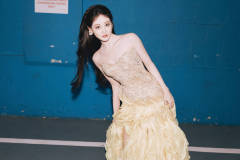 杨采钰穿鎏金长裙古典大气 躺在镜子前红唇吸睛