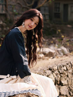 毛晓彤穿民族风服饰阳光下微笑 长发飞扬浪漫自由
