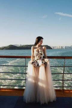 金晨穿纱裙清新梦幻 肌肤白皙眼神慵懒魅力四射
