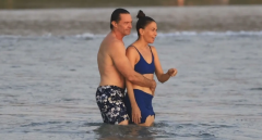 休杰克曼与女友海边度假 两人紧紧相拥感情甜蜜