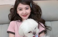 章若楠戴蓝发夹俏皮软萌 穿粉T抱小狗元气又治愈