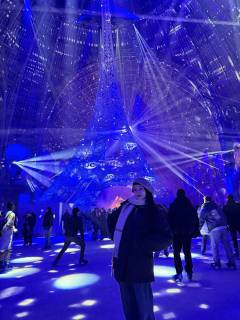 周也晒法国旅行美照好可爱 戴贝雷帽模仿电影海报