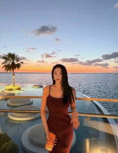 韩雪乘坐游艇出海心情好!穿红色小吊带明艳吸睛