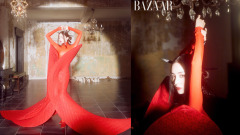 娜扎时尚芭莎7月刊封面释出 红色造型优雅大气