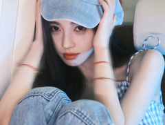 鞠婧祎穿蓝格纹吊带清纯甜美 双手捧脸卖萌