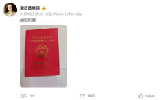 黄慧颐晒结婚证封面回应保剑锋 配文“如你所愿”