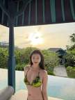 菅纫姿穿比基尼漫步沙滩 身姿舒展尽显热辣好身材