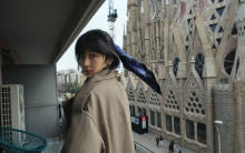 孙千蓝丝巾束发气质清冷 卡其风衣尽显随性松弛感
