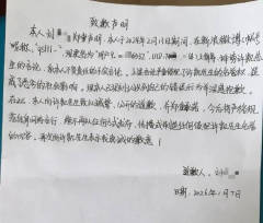 陈牧驰工作室发布维权案件进展 晒黑粉手写道歉信