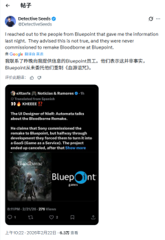 蓝点工作室回应传闻:从未接手《血源诅咒》重制项目