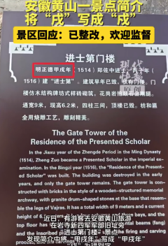 景区回应甲戌错写成甲戍:已经整改到位了,重新换了个牌子上去