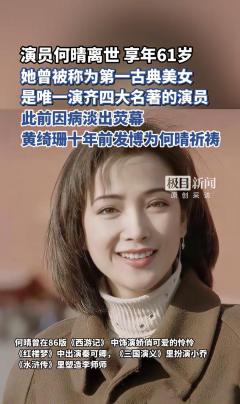 猪八戒扮演者悼念何晴:太可惜了,演艺界痛失英才