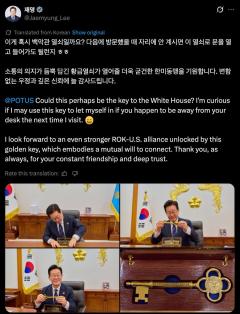 李在明为何此时晒特朗普所赠金钥匙 期待加深韩美关系