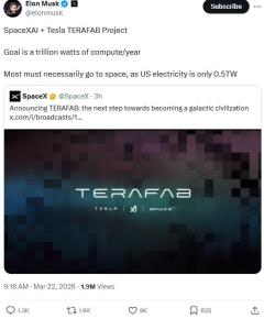马斯克发布Terafab项目 目标年产千亿芯片