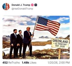 特朗普发图暗示吞并格陵兰岛 再次强调拥有意愿