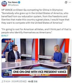 美国副总统谈谷爱凌代表中国参赛:受益于我们制度,应想着为美国而战!支持美国运动员的立场