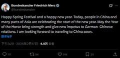 德国总理默茨拜年 预告将访华 期待德中关系新动力