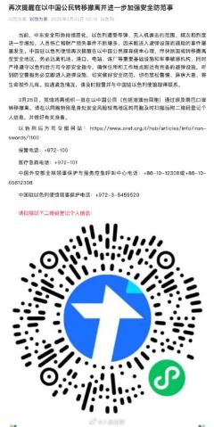 我驻以色列使馆再发提醒 安全形势恶化请撤离