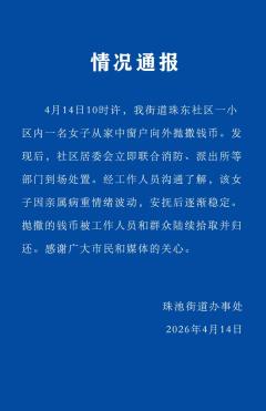 女子抛撒大量港币引争抢 当地通报 情绪波动所致