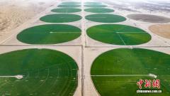 塔克拉玛干沙漠边缘现“绿色圆盘” 高效节水农业显成效