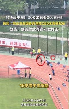 一高中生200米跑出20.99秒 创体育单招新纪录