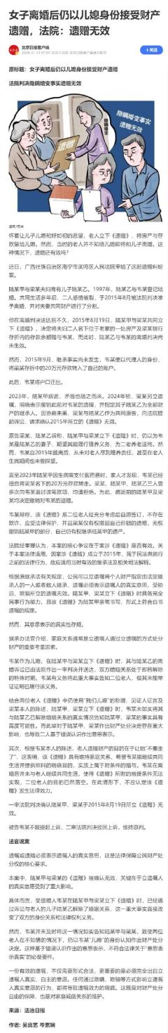 儿媳隐瞒离婚被遗赠财产算数吗 法院判决无效