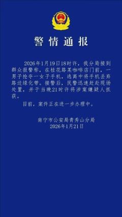 男子咖啡店抢夺女子手机已被抓 嫌疑人当晚落网