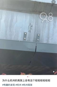 杭州一高架上现“神秘图案” 可爱涂鸦引热议