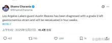 里夫斯小腿二级拉伤 湖人遭遇重创