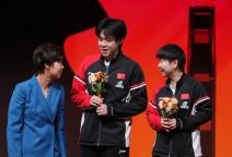 王楚钦孙颖莎领奖官方照片 顽强拼搏虽败犹荣