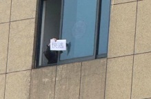 离职要走发现同事在窗口举牌 网友:表情包走进现实吗?